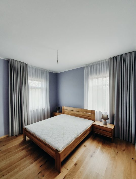 Dienas un nakts aizkari perfekti pieskaņoti pārējam interjeram, jo šie zemes toņi mājokli padara harmonisku un mājīgu. Izvēlēts perfekts aizkaru garums un ielocītes vizuāli daiļo loga noformējumu.