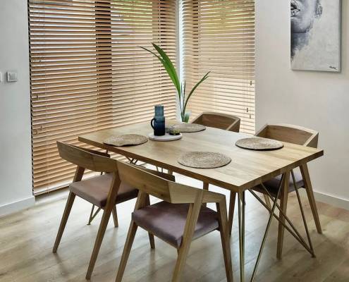 Деревянные горизонтальные жалюзи в интерьер приносит натуральный вкус. Они сделаны из натурального дерева что создает дизайн окна с сильным акцентом, что не требует больше никаких дополнений.
